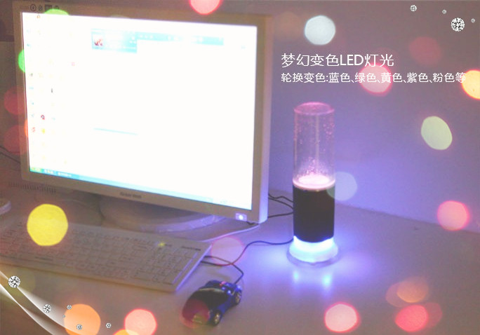 音乐是现代人心灵治愈系的一剂良药,或动感的或慵懒小调,总有一些旋律伴随每一天的生活。生活与音乐的摩擦碰撞出心灵的色彩,红色的热情奔放,活力四射的橙黄色,恬静慵懒的平和绿色,亦或是甜美的粉红色调,再或者是纯净美好的天蓝色系。生活是多姿多彩的,音乐的旋律跟随生活的姿态尽情绽放多彩心情。LED喷水小音响走进每一首音乐的心灵深处,感受每一首音乐的精华所在,用七彩水光诠释每一个音符的色彩。