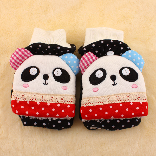 保暖手套可爱大变身,温暖过冬厚重的外套是不够的,你一定需要至少一双卡通又可爱手套来保护你的双手,不只是御寒,也是美丽加分的时尚单品。可爱熊猫翻盖两用保暖手套,时尚小巧的半指手套设计,给手指自由活动的空洞,手指能灵活活动,写字看书上网戴着它既温暖又不影响工作学习。不用双手工作学习时,把穿了可爱点点的衣服的熊猫翻过来就能全方位温暖呵护双手。科学的两用翻盖设计,既方便了手指活动又可以全面的保暖。