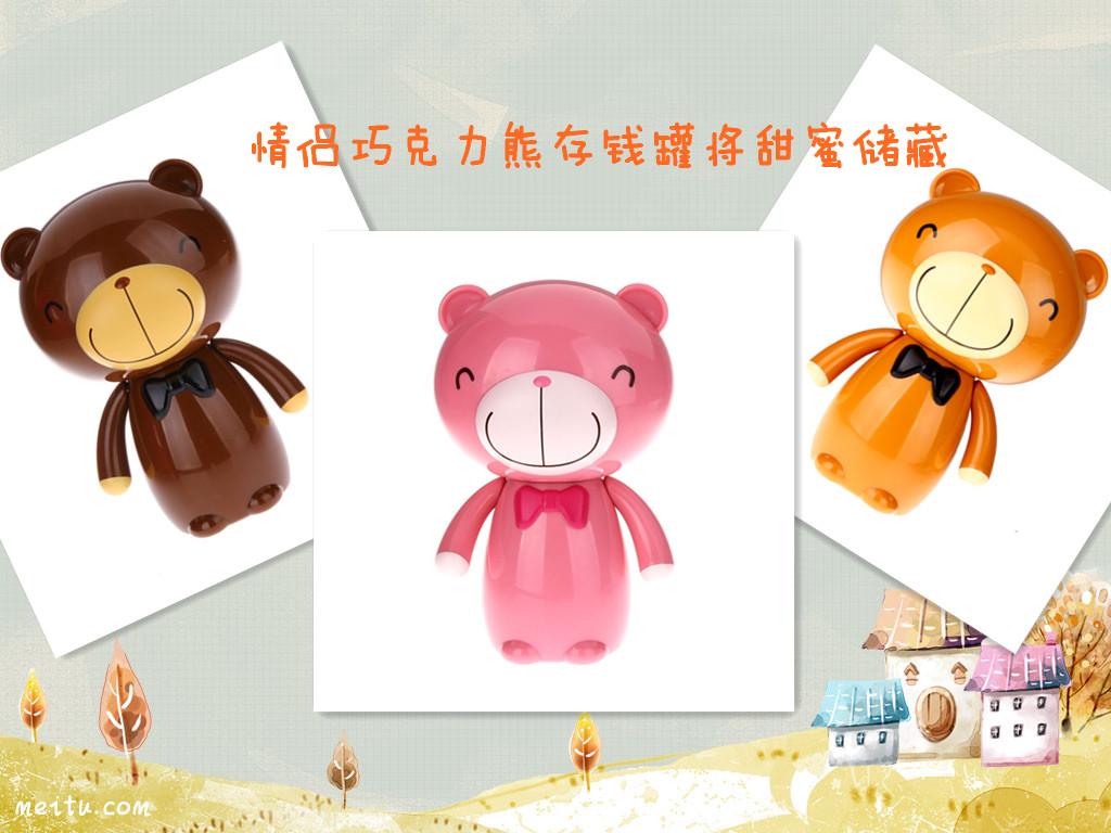 国外的愚人节的派对以恶搞出名,万圣节的派对以疯狂著称;中国的七夕节以浪漫闻名,中秋节以温情著称。中西结合的圣诞节多了国外的热闹,融合了中国式的浪漫温情,所以备受年轻人喜欢。一年一度的圣诞节就要来了,为了浪漫温情的圣诞节派对,你准备好了情侣巧克力熊存钱罐储藏甜蜜了吗?