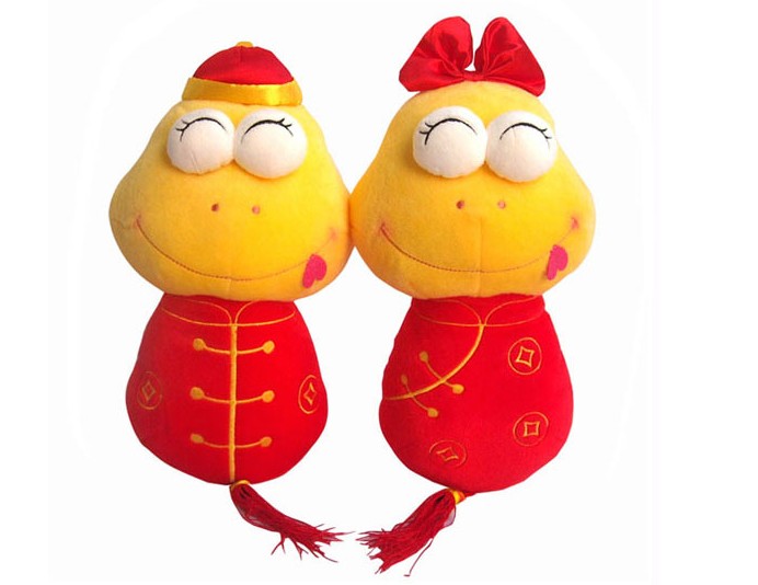 市面上这些可爱的小蛇们,也有着很多种类,除了每一种蛇的造型都不同外,而且还分为大、中、小号,让不同需求的客户们挑选。而且小蛇的造型十分的可爱,有点萌的感觉,摆脱了以往人们对蛇的印象,小蛇头上还带上红色的小帽子,身穿红色唐装,也有男、女两种,作为情侣款也可以。红色黄色两种颜色的小蛇,是不是让你感觉很亲切呢。