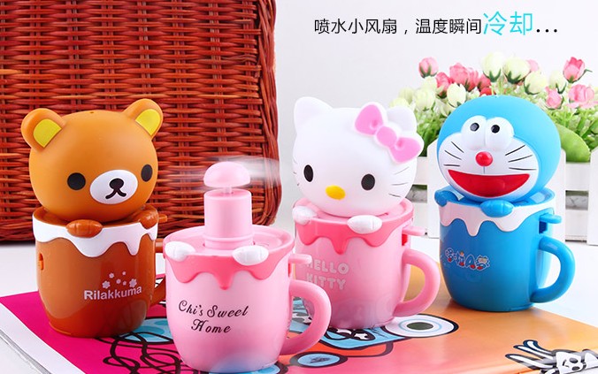当下,市场上的小风扇种类可以说是多不胜数,而其中最流行的要数喷水小风扇了。它不但拥有风扇的功能,创意的人还赋予了它喷水的功能,独特的注水盒设计,在里面加入少许的水,在小风扇启动的时候按下喷水按钮,就会喷出水,可以有效降低表面温度5到6度,瞬间增加空气湿度,有效快速的降低体温,从而达到降温的效果。当然了爱美的mm们也可以加入爽肤水、香水在里面,喷雾效果同样的好。