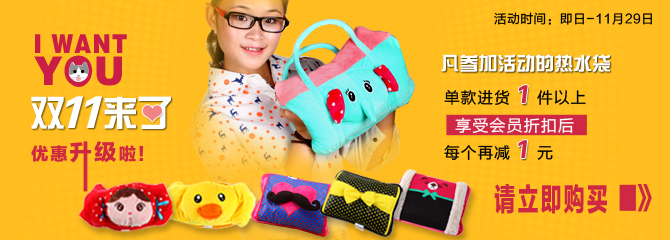 当下进货网紧跟市场潮流方向,网站内有各种图案的电热水袋,而且不仅在图案上更卡通,不少款式的热水袋连形状也直接拷贝了卡通人物的年轻人卡通明星黄小鸭,阿狸,大嘴猴......都变成了温暖诱人的热水袋。充电热水袋因使用方便、外形漂亮,也备受15-25岁年轻女性的喜爱。采用高档毛绒面料,舒适度极强,以高储能制热液为发热体,通过袋内半导体均匀加热储能,升温快保温持久,自动温控,杜绝过热,插电加热到设定温度时,指示灯灭,产品进入保温状态,当内部压力达到一定的程度时,强行断电让产品真正做到安全防爆。充电8分钟,暖手2小时、暖被10小时,暖脚、暖腰、暖胃、暖腿、暖脚、暖肚子,能有效减少冻疮、关节炎、慢性胃肠病等的发生,有效缓解痛经,同时具有消除肌肉疲劳和舒展血脉等保健功能,是冬季理想的保暖、热敷理疗辅助佳品。