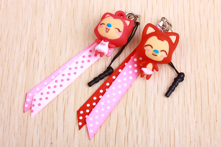 粉色代表着浪漫,粉色的丝带,红色的小圆点,多了几份小女生的感觉。红色代表炙热,热情的红色丝带。阿狸和桃子还给了多重的贴心,他没每人都给手机轻轻的盖上防尘塞,手机挂件更贴心的一层保护。