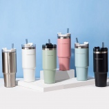 890ML大容量12#咖啡杯304不锈钢车载保温杯带吸管