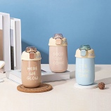 500ML萌熊实色吸管彩色卡通保温杯304不锈钢可爱水杯