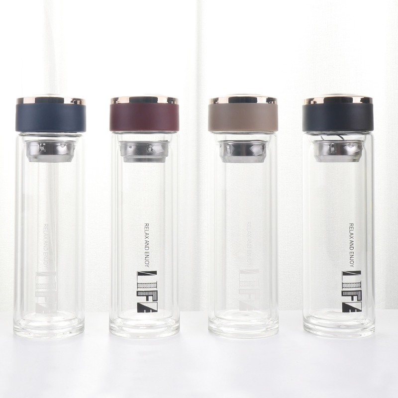 300ML天悦商务双层玻璃杯不锈钢茶漏男士水杯