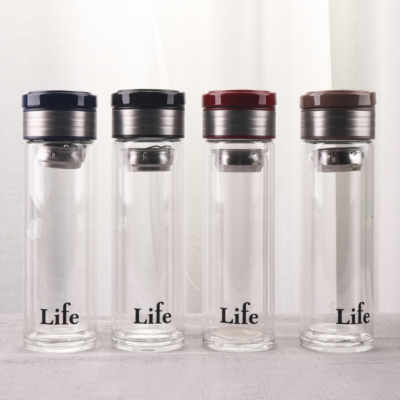 300ML茶艺玻璃杯简约商务男士茶水分离双层泡茶水杯