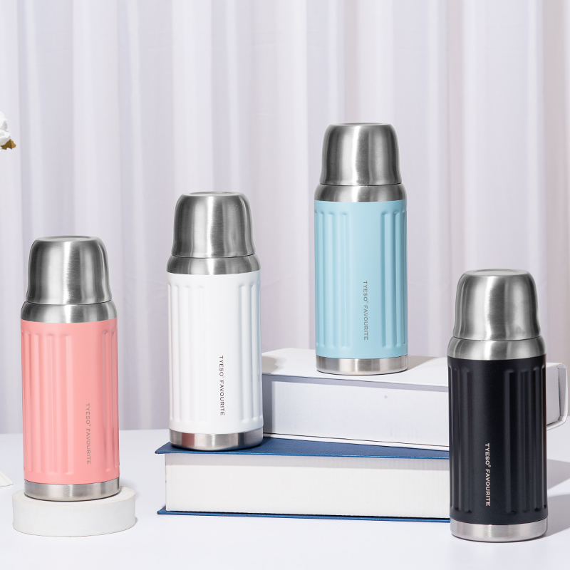 500ML大容量经典条纹水瓶304不锈钢直身保温杯