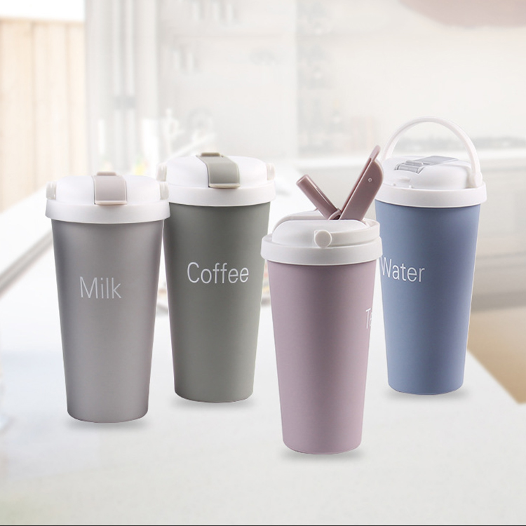 500ML创意吸管咖啡杯304不锈钢便携手提保温杯