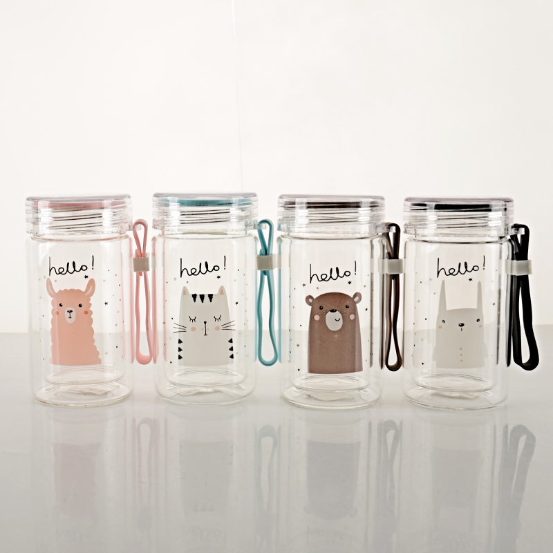 280ML卡通欧彩动物双层玻璃杯学生隔热防烫喝水杯子