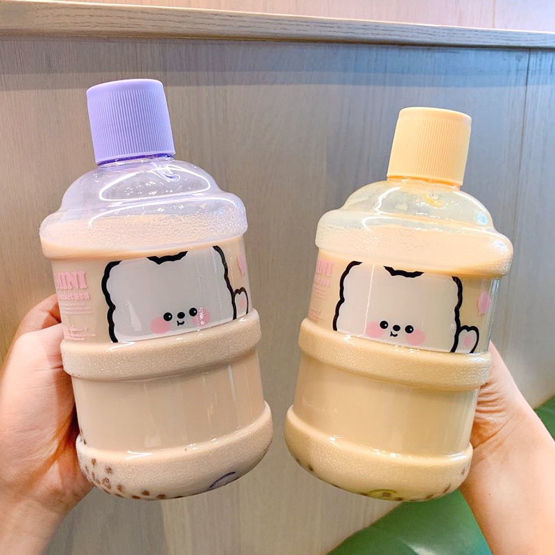 630ML卡通可爱熊迷你桶塑料杯创意个性学生情侣杯子