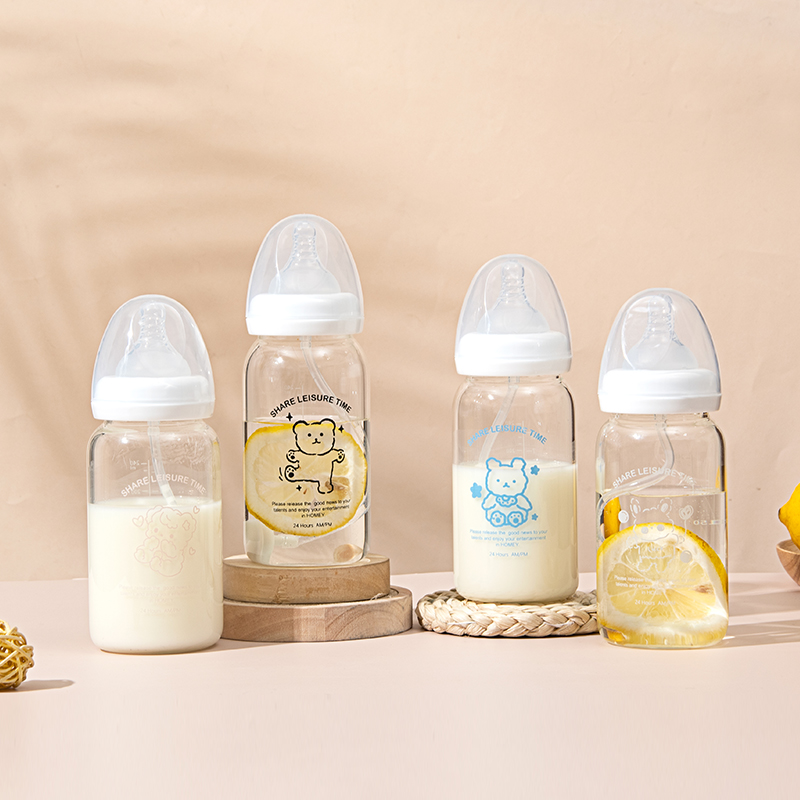 330ML淘气熊奶瓶玻璃杯创意吸管杯学生情侣便携杯子