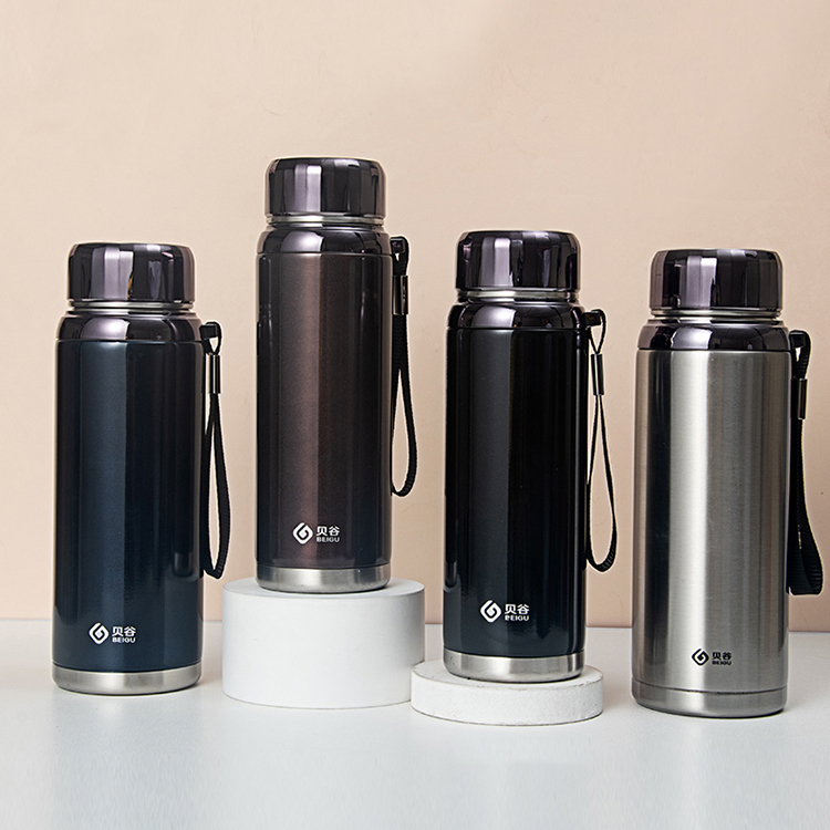 600ML吊带真空保温杯大容量户外运动旅行便携车载水壶