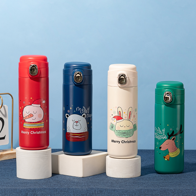 400ML卡通圣诞保温杯304不锈钢弹跳盖节日礼品杯子