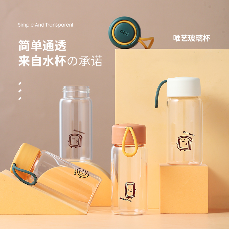 200ML卡通唯艺玻璃杯简约小清新森系水杯学生提手杯
