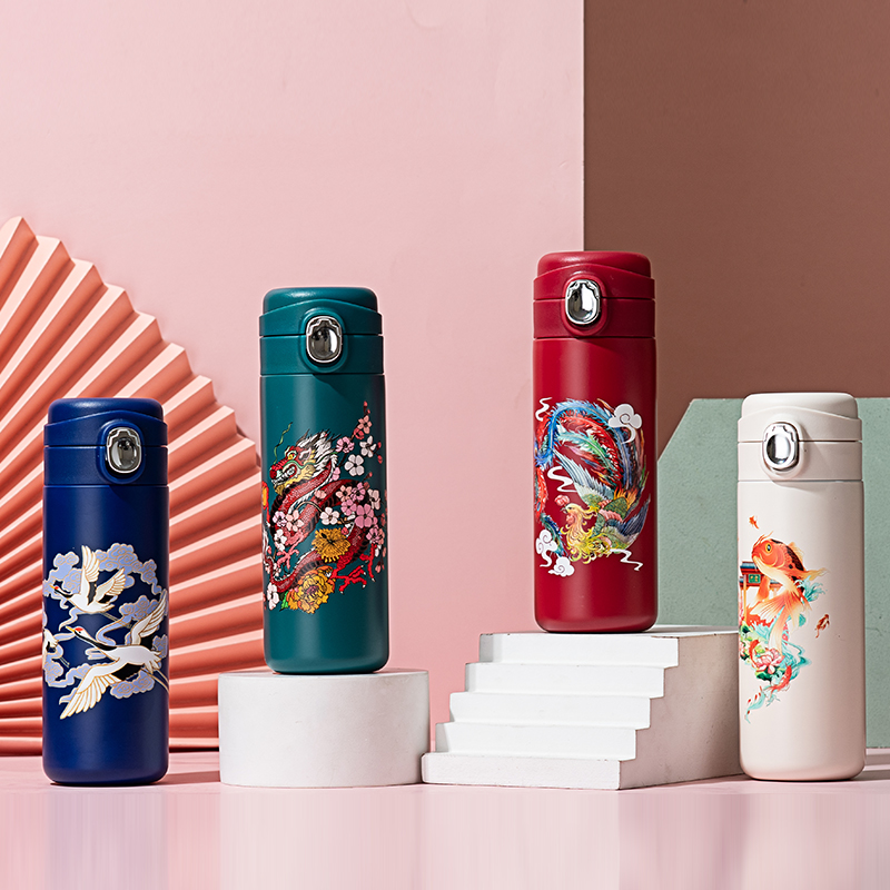 商品名称:400ML国潮龙凤呈祥保温杯潮流复古中国风弹盖水杯子