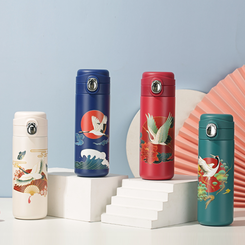400ML国潮仙鹤保温杯个性潮流复古中国风弹盖水杯子
