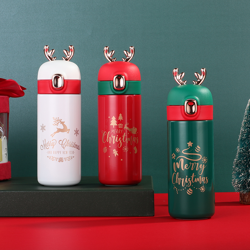 350ML圣诞豆豆鹿保温杯304不锈钢弹跳盖节日礼品杯