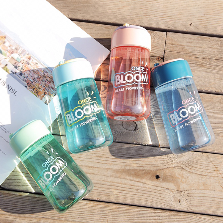 340ML创意简约BLOOM休闲塑料杯带茶隔便携随手杯