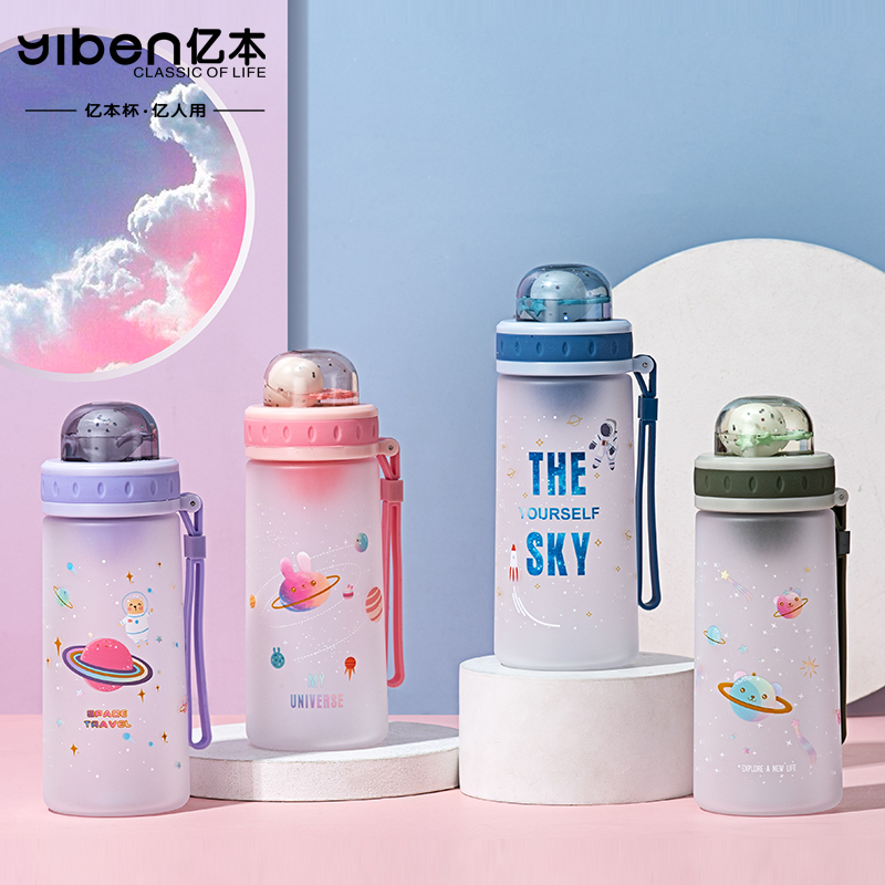 350ML亿本欧利太空杯透明提手水杯学生户外运动塑料杯