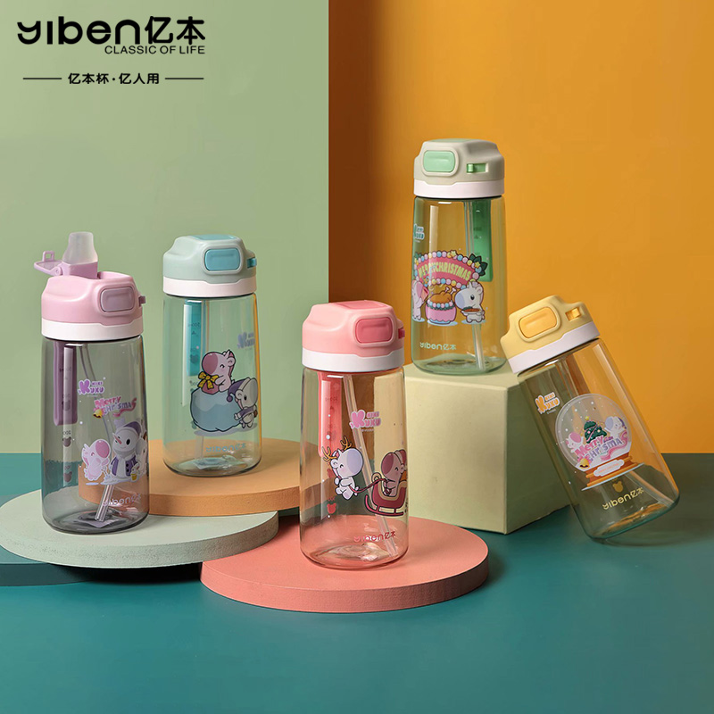 500ML亿本独角兽允星儿童水壶吸管塑料杯卡通便携水杯