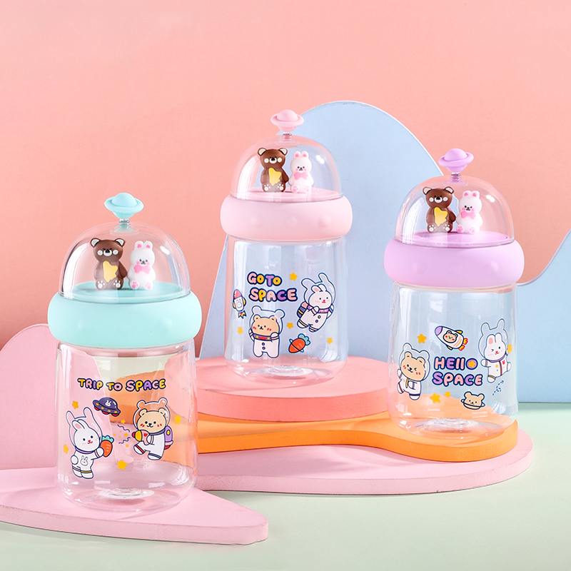 430ML元气熊熊弹盖吸管塑料杯简约清新学生便携杯子