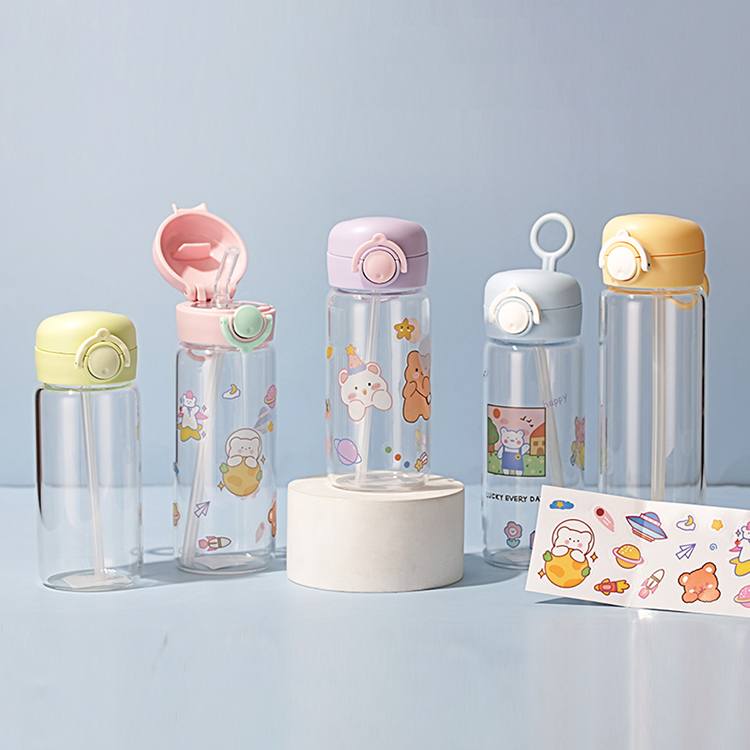 420ML创意DIY贴纸美乐吸管玻璃杯简约清新学生水杯