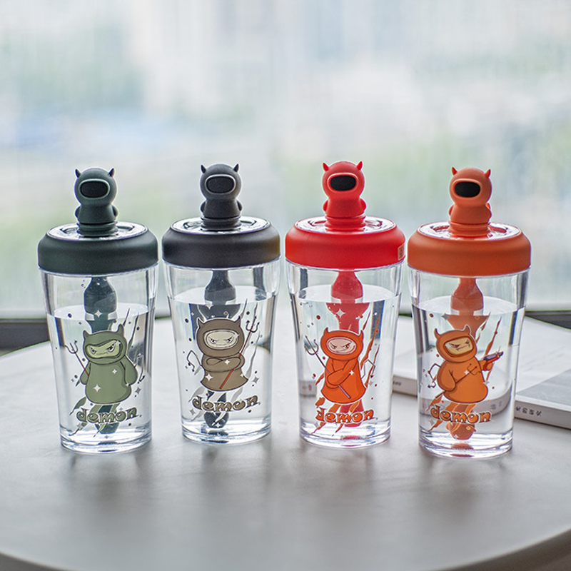 550ML潮玩恶魔搅拌塑料杯塑料杯学生Tritan吸管杯