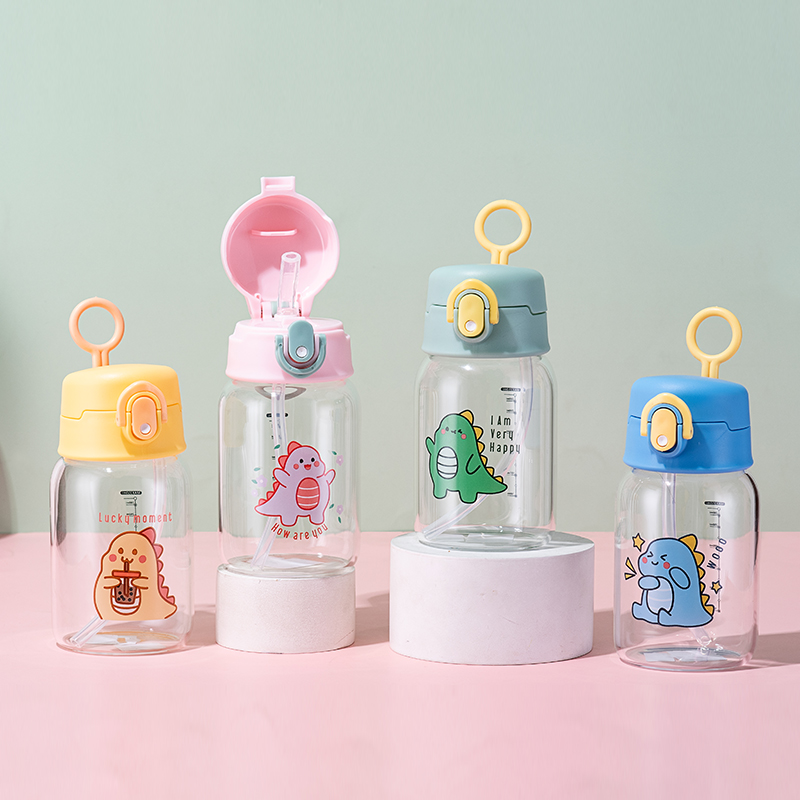 350mlQ萌恐龙透明吸嘴玻璃杯学生小清新可爱便携水杯