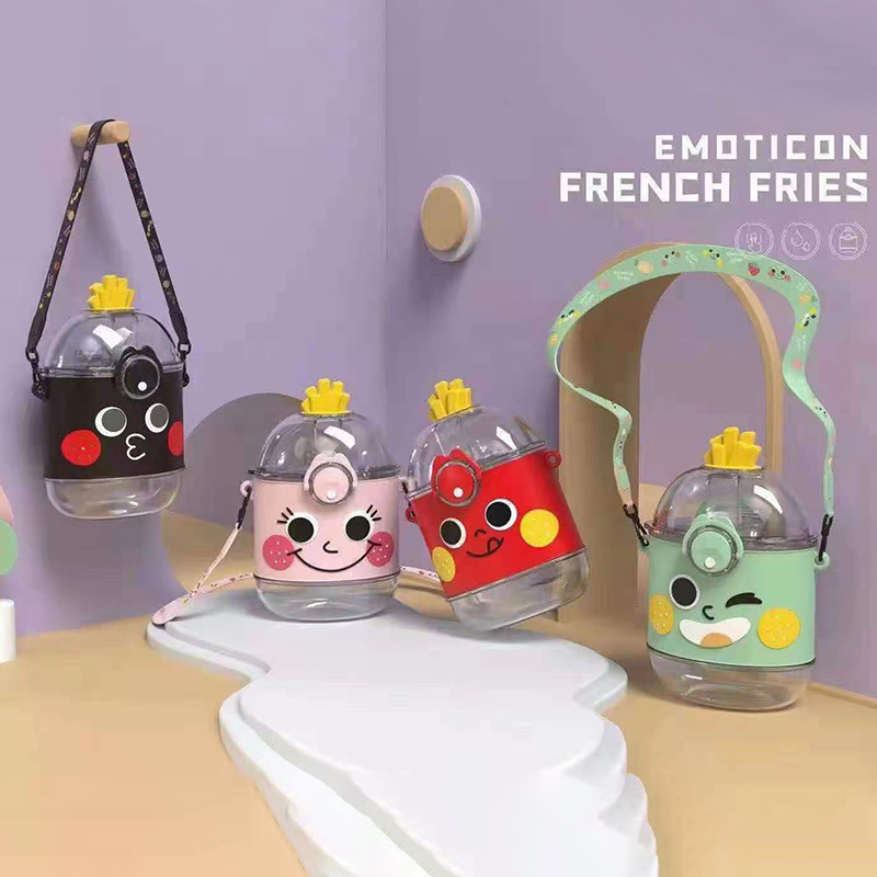 390ML表情系列薯条塑料杯可爱少女心便携背带吸管杯