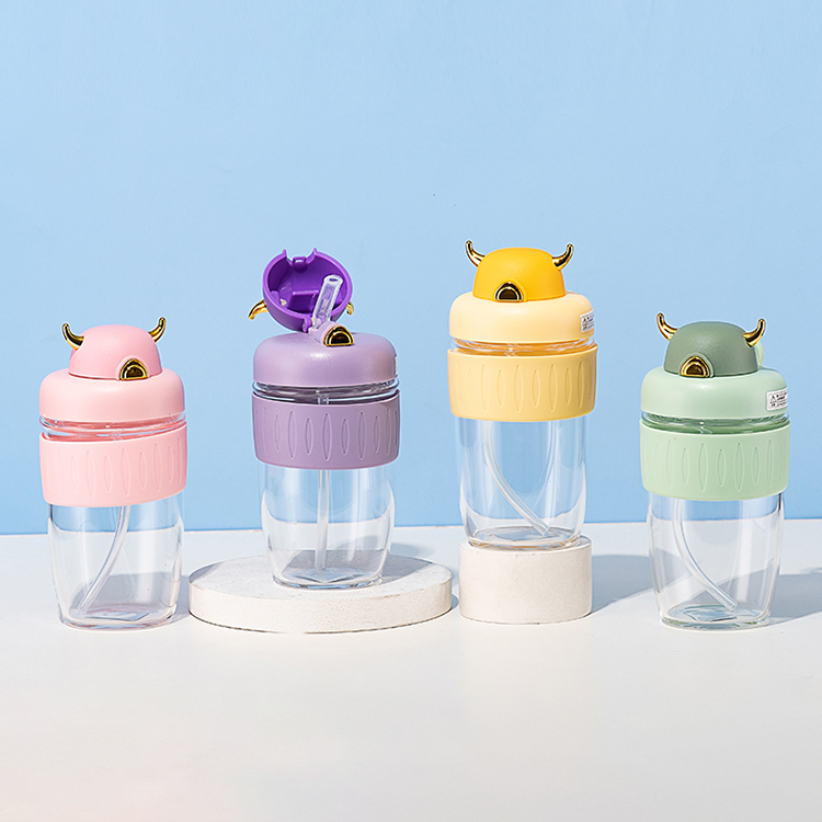 430ml恶魔吸管玻璃杯可爱便携水杯学生情侣随手杯子
