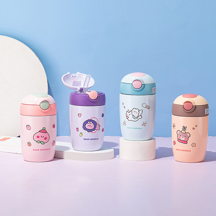 280ML奇境漫游弹跳吸管保温杯304不锈钢学生情侣水杯子