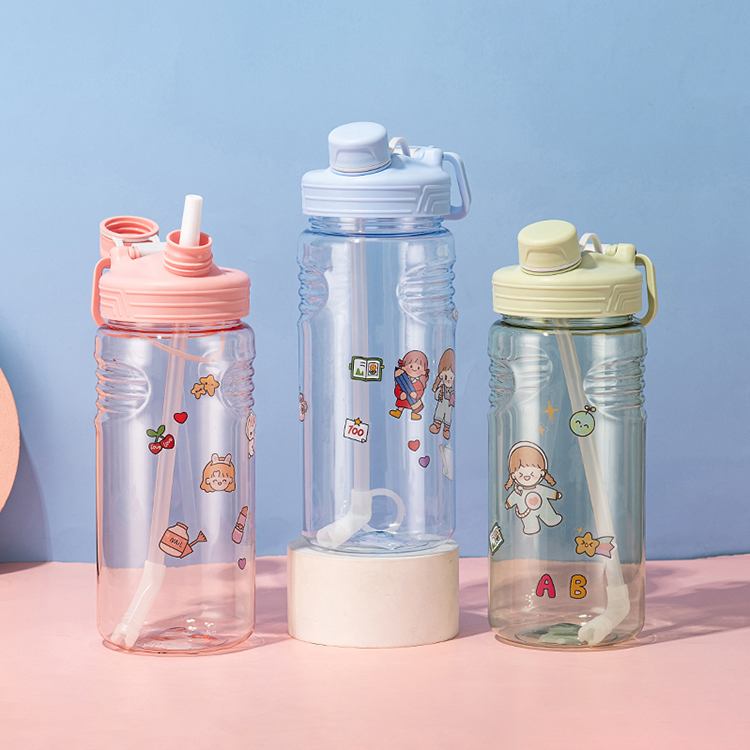 600ML亿本乐卡太空杯简约透明便携水户外提手塑料杯