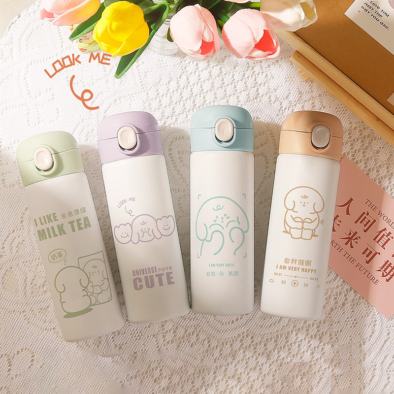 380ml情绪系弹盖保温杯304不锈钢小清新少女心水杯