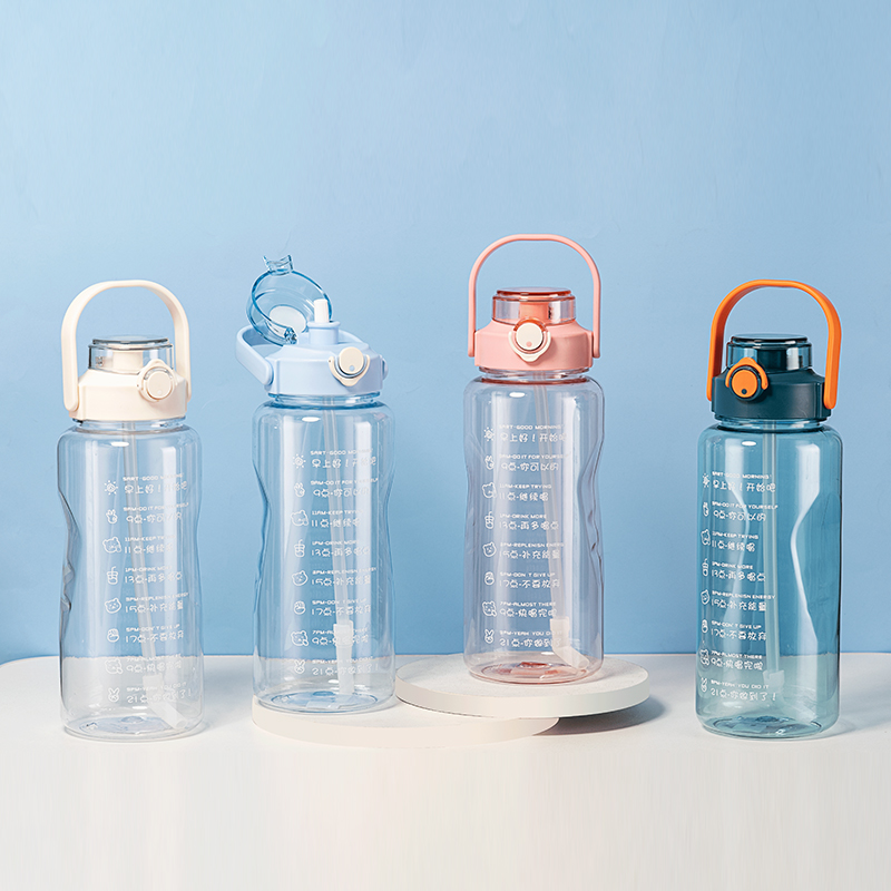 2000ML大容量提手塑料杯带吸管户外运动健身杯子