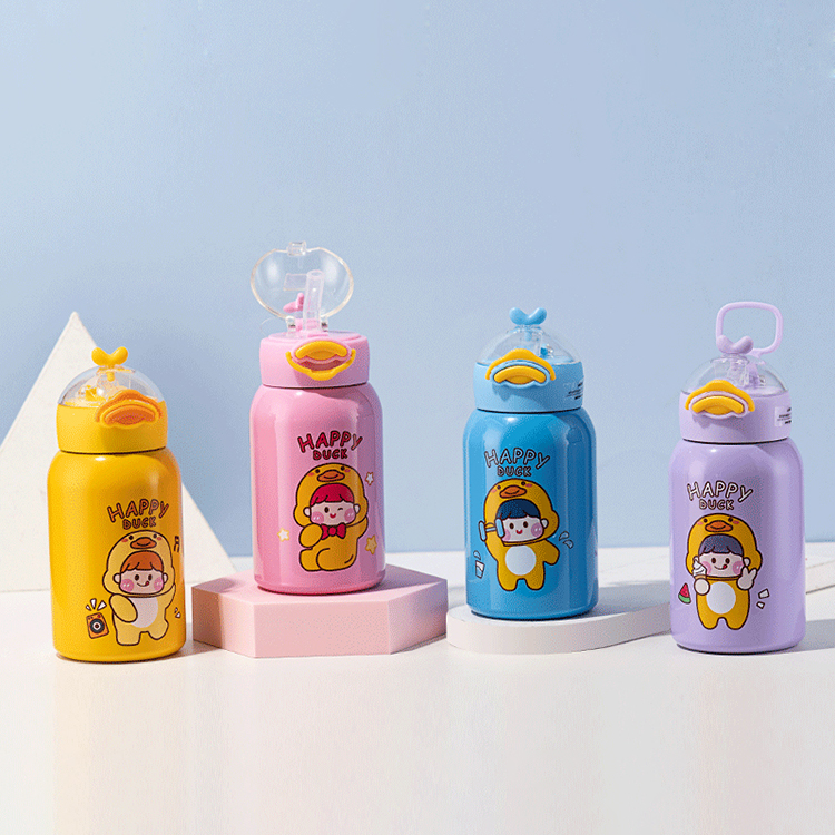 400ML卡通鸭吸管保温杯