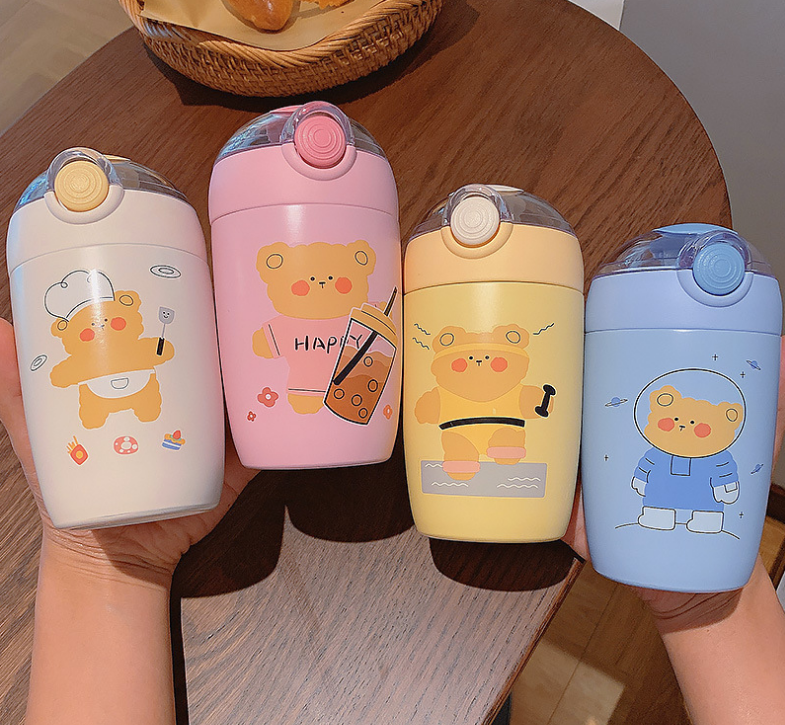 300ML可爱小熊系列保温杯便携随手弹盖式吸管学生杯