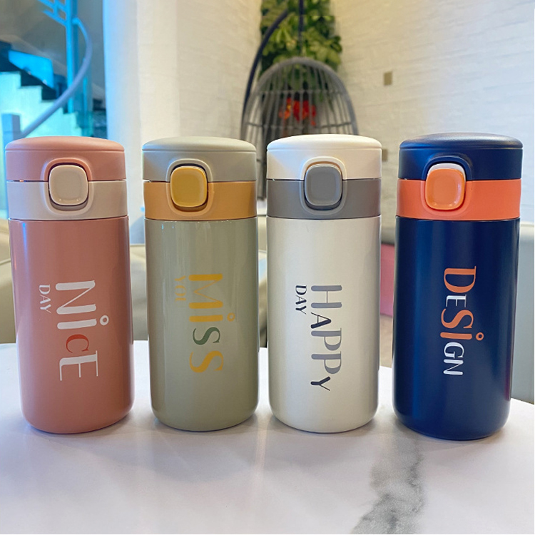 280ML字母时尚弹盖保温杯304不锈钢小清新直身水杯