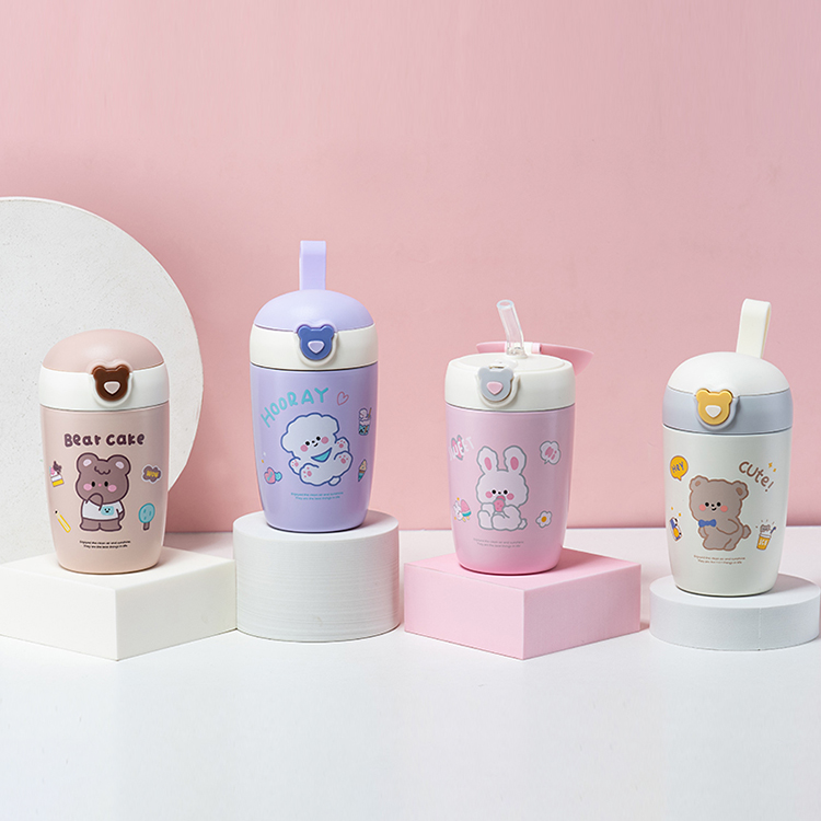 320ML小熊弹盖吸管保温杯304不锈钢学生情侣随手杯
