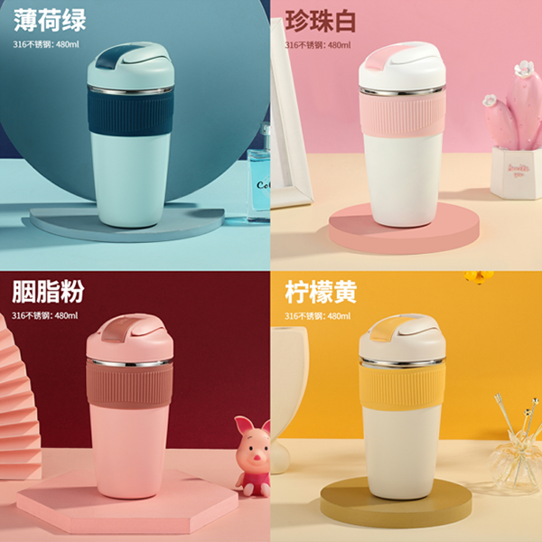 480ML简约纯色316不锈钢双饮保温杯男女士咖啡杯
