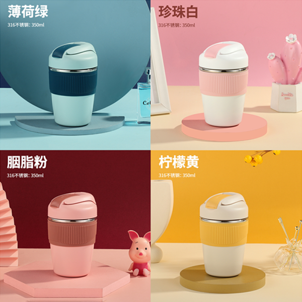 350ML简约纯色316不锈钢双饮保温杯男女士咖啡杯