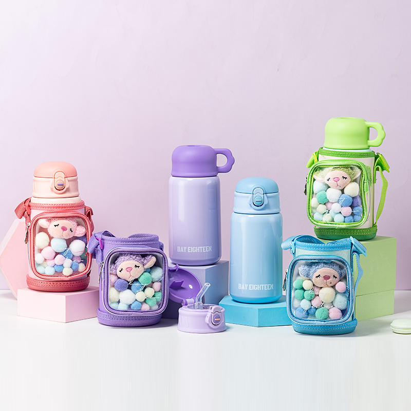 500ML透明小书包儿童壶304不锈钢一杯两盖保温杯