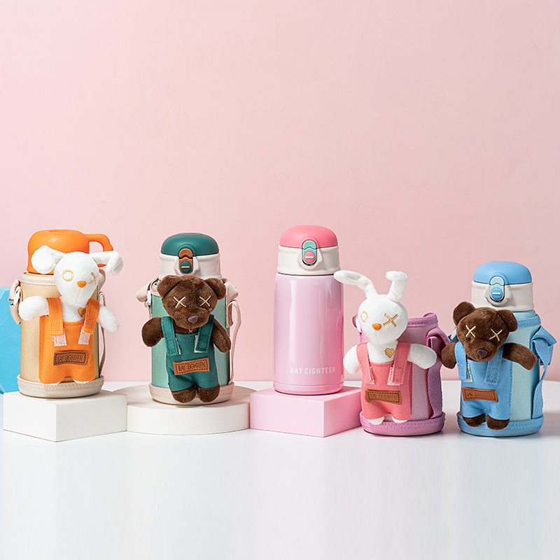 商品名称:500ML卡通毛绒兔熊儿童壶304不锈钢一杯两盖保温杯