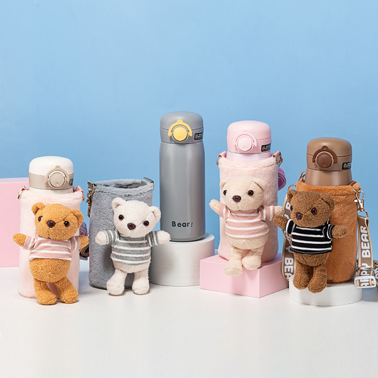 350ML美乐小熊周末毛绒套保温杯304不锈钢吸管杯