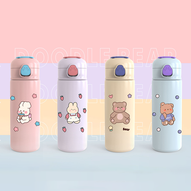 420ML熊掌弹跳吸管保温杯304不锈钢小清新少女心水杯