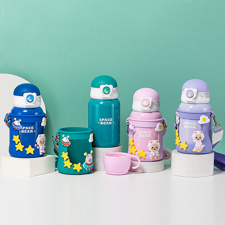 商品名称:500ML卡通太空旅行熊保温杯316不锈钢一杯两盖儿童杯