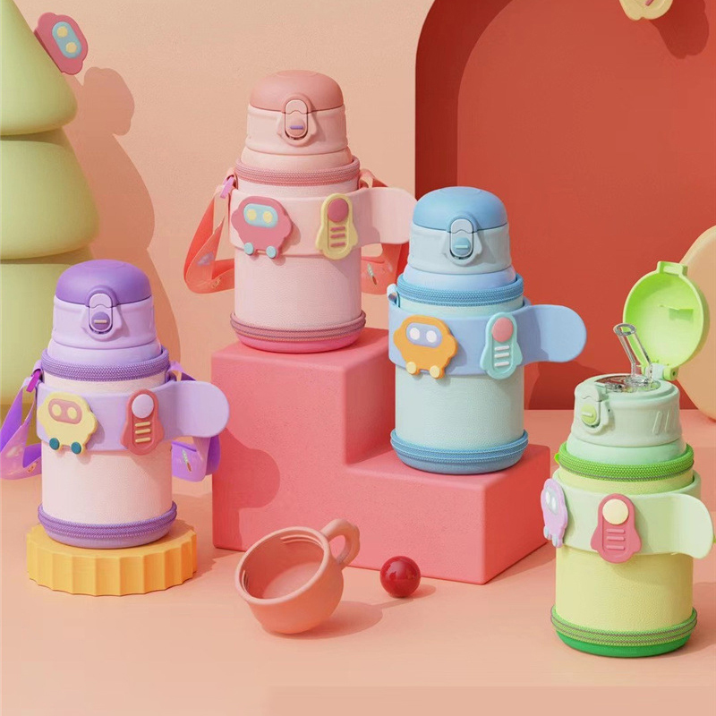 500ML卡通小飞船皮套儿童保温杯304不锈钢吸管杯