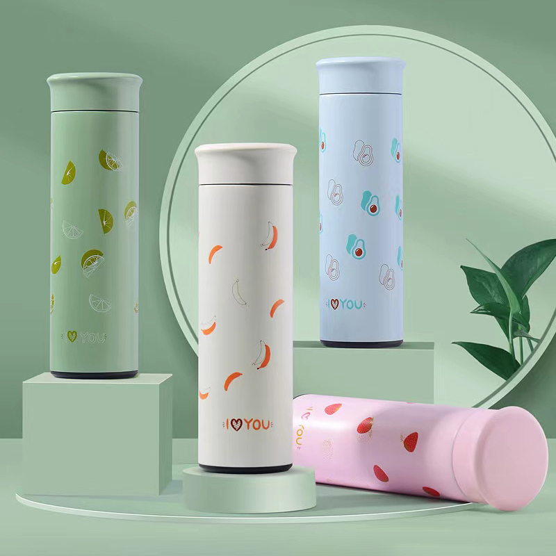 450ML水果欧格直身保温杯304不锈钢小清新带茶隔杯子