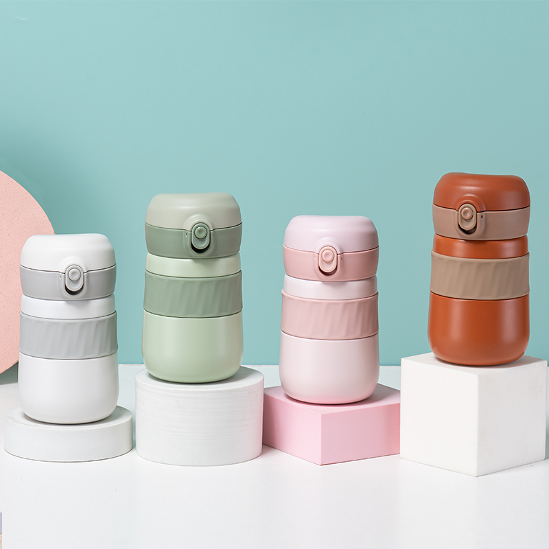 350ML创意纯色弹盖保温杯304不锈钢户外运动水杯