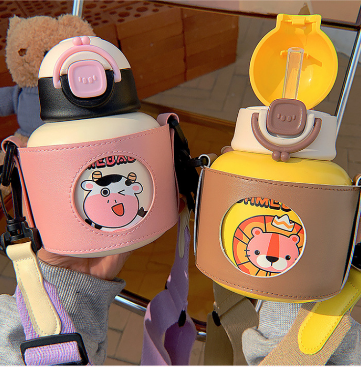 500ML卡通水果动物塑吊保温杯304不锈钢便携提手杯子